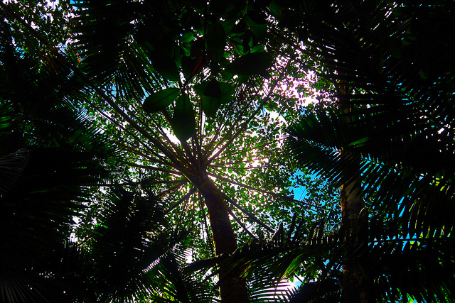 Sunlight peaking through the forest canopy in Puerto Rico.